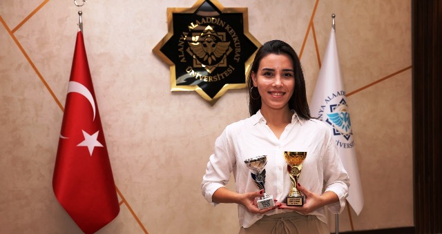 Alanya Alaaddin Keykubat Üniversitesi (ALKÜ), spora ve sporcuya verdiği önemin başarılarını her geçen gün yükseltirken bir taraftan da üniversitenin sporcu olan personelleri de ulusal ve uluslararası alanlarda başarılara imza atıyor. 3-5 Ocak’ta Estonya’nın Tallinn şehrinde düzenlenen, 16 ülkenin katılım sağladığı Juna Cup 2025 Uluslararası Artistik Buz Pateni Yarışması’nda Genç Yetişkinler Gümüş Kategorisinde Serbest ve Artistik Serbest olmak üzere iki farklı programda birinci olan ALKÜ Eğitim Fakültesi İngiliz Dili Eğitimi Ana Bilim Dalı Arş. Gör. Gökçen Bahadır; ALKÜ Rektörü Prof. Dr. Kenan Ahmet Türkdoğan’ı ziyaret etti. Ziyarette yoğun çalışma temposunu anlatarak kupalarını getiren Arş. Gör. Gökçen Bahadır, bu başarılarla gurur duyduğunu söyledi. Arş. Gör. Gökçen Bahadır, konuşmasının devamında çalışmalarını yoğunlaştırdığını söyleyerek hedefinin uluslararası yarışmaların şampiyonluk kürsülerinde Türk bayrağını dalgalandırmaya devam etmek istediğini belirtti. Görüşmenin devamında Rektör Prof. Dr. Kenan Ahmet Türkdoğan, Arş. Gör. Gökçen Bahadır’a başarılarından dolayı teşekkür ederek ALKÜ adına gurur duyduklarını ifade etti. Rektör Türkdoğan, ALKÜ ailesi olarak Bahadır’ın her zaman yanında olduklarını dile getirdi. Ziyaret, Bahadır’ın kazandığı iki kupa ile çekilen hatıra fotoğrafıyla sona erdi. – ALKÜ / Bülten