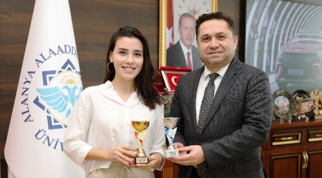 ALKÜ'lü buz pateni şampiyonundan Rektör Türkdoğan'a ziyaret