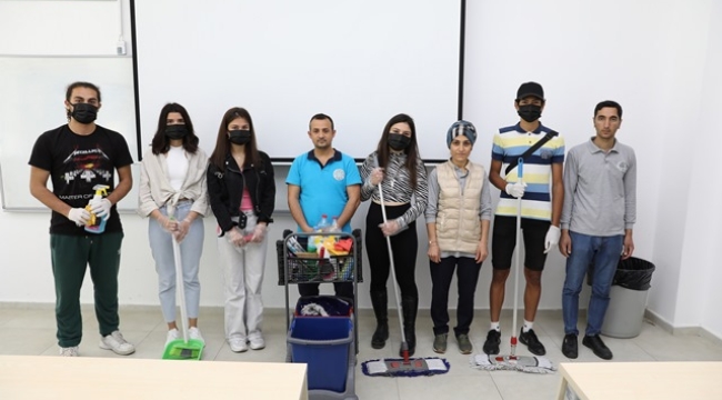 Etkinlik tüm öğleden sonra öğrencilerin katlardaki derslikleri ve amfileri temizlemesiyle devam etti.