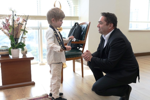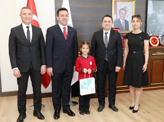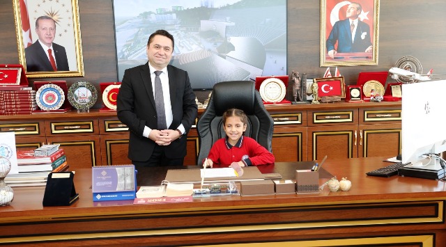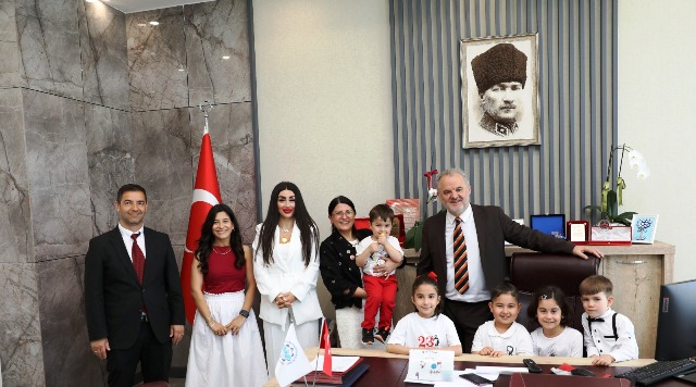 23 Nisan Ulusal Egemenlik ve Çocuk Bayramı dolayısıyla ALKÜ Mühendislik Fakültesi Dr. Öğr. Üyesi Aslı Erkal Aytemur’un minik oğlu Eren Aytemur, Rektör Türkdoğan’ı ziyaret ederek sohbet etti. Sohbetin ardından Rektör Türkdoğan, minik Eren’e Alanyaspor forması ve atkısı hediye etti. Bir başka ziyarette ise Kestel Alantur Ayhan Şahenk İlkokulu 4. sınıf öğrencisi olan Ela Gözlüklü, Sınıf Öğretmeni Banu Harmankaya ve Okul Müdürü Veli Uğur ile Rektör Prof. Dr. Kenan Ahmet Türkdoğan’ı makamında ziyaret etti. Rektör Türkdoğan’ın koltuğuna oturan Ela, makamda bulunmaktan mutluluk duyduğunu ifade ederek “Bu koltukta oturmak, çocuklara duyulan güvenin simgesidir. Bizler de gelecekte ülkemize, bilime ve insanlığa faydalı bireyler olmak için elimizden gelenin en iyisini yapacağız. Bu anlamlı günde bana bu fırsatı verdikleri için başta Sayın Rektörümüz olmak üzere tüm üniversite yönetimine teşekkür ediyorum. 23 Nisan Ulusal Egemenlik ve Çocuk Bayramı’mız kutlu olsun!” dedi.