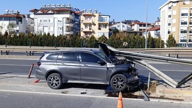 Antalya-Alanya D-400 Karayolu’nda köprülü kavşak yan yola giren otomobil, karayoluna çıkan ve virajı geniş alan otomobile çarpmamak için köprülü kavşağın bariyerlerine çarptı. Kazaya neden olan otomobil, durmayarak yoluna devam ederken, bariyerlerin hurdaya çevirdiği otomobilde bulunan 3 kişi feci kazayı büyük şans eseri yaralı olarak atlattılar.