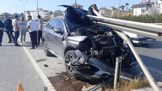 Kaza, Antalya-Alanya D-400 Karayolu’nda yaşandı. Edinilen bilgiye göre, Antalya istikametinden Alanya istikametine seyir halindeki Fatih Beyazer'in kullandığı 07 BLJ 123 plakalı cip, Sorgun-Otogar Köprülü kavşak yan yola girdiği sırada, Sorgun Mahallesi, 8088 Sokak’tan yan yola geniş kavisle dönmekte olan plaka ve sürücüsü belirlenemeyen otomobile çarpmamak için manevra yaptığı sırada direksiyon hakimiyetini kaybederek köprülü kavşağın girişinde bulunan çelik bariyerlere çarptı. Çarpmanın şiddetiyle hurdaya dönen otomobilin sürücüsü Fatih Beyazer ile otomobilde yolcu olarak bulunan Muğdat Kara ve Rıdvan Sofuoğlu yaralandı. 112 sağlık ekiplerinin olay yerindeki müdahalesinin ardından ambulansla hastaneye kaldırılan yaralıların hayati tehlikelerinin olmadığı bildirildi.- İHA