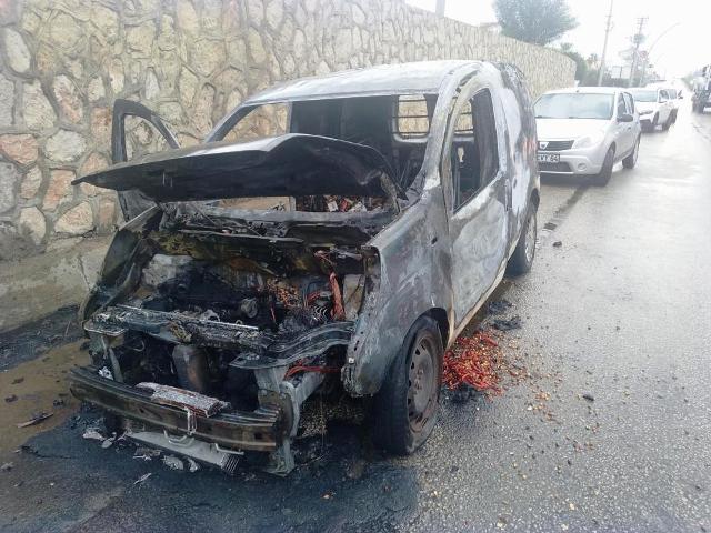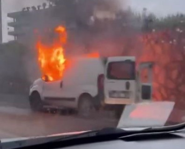 Olay, Antalya-Alanya D-400 Karayolu, Cumalı Mevkii’nde meydana geldi. Serik'ten Antalya istikametine seyir halindeki A.T. idaresindeki 07 DZ 361 plakalı hafif ticari araç bilinmeyen bir nedenle alev alarak yanmaya başladı. Aracın motor kısmından gelen dumanları fark eden araç sürücüsü aracını yolu sağına çekerek durdu ve araçtan kendisini dışarı attı. Vatandaşların ihbarı üzerine olay yerine polis ve itfaiye ekipleri sevk edildi. Yangına ilk müdahaleyi araç sürücüsü yangın tüpü ile yaparken, itfaiyenin müdahalesi ile araç kısa sürede söndürüldü. Bir kuruyemiş firmasına ait olan araç tamamen yanarak kullanılamaz hale gelirken, araçta bulunan kuruyemişlerde küle döndü. Araç sürücüsü A.T. yangının nasıl çıktığını anlayamadığını birden dumanları fark edince aracı yol kenarına çekip yangın söndürme tüpü ile müdahale ettiğini söyledi. Polis yangınla ilgili inceleme başlattı. – İHA