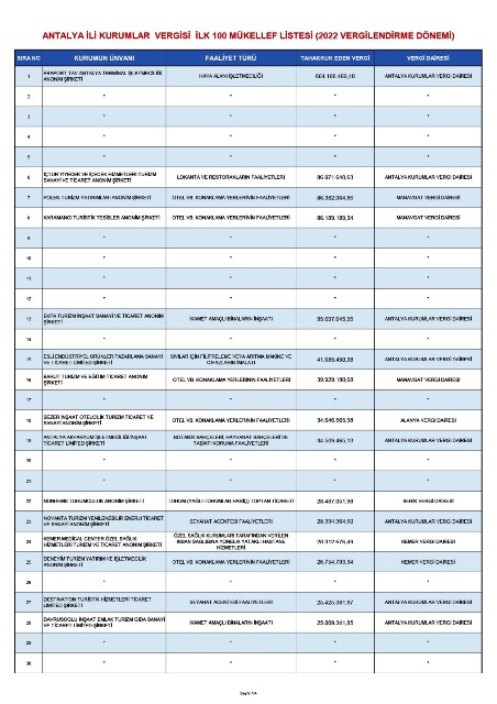 Antalya Defterdarlığı kurumlar vergisi ve gelir vergisinde en fazla vergi veren rekortmenleri açıkladı. Liste gelir ve kurumlar vergisi rekortmenleri aralarında iş insanı Mehmet Has ve ALANYUM ile birlikte 11 mükellef Alanya’da kayıtlı.
