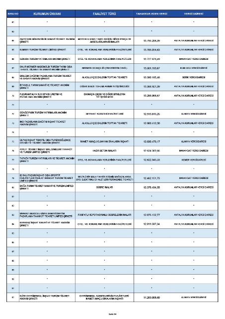18- Sezer İnşaat Otelcilik Turizm Ticaret ve Sanayi Anonim Şirketi 34 milyon 646 bin 566 TL