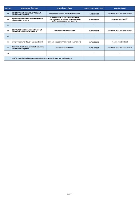 98- Zeynep Turizm Ve Ticaret Anonim Şirketi Otelcilik 10 milyon 758 bin 394 TL ile listede ismi ilan edilen firmalar arasında yer aldı.