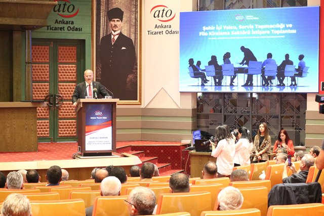 Ankara Ticaret Odası (ATO) Yönetim Kurulu Başkanı Gürsel Baran, servis taşımacılığı sektörünün sorunlarının çözümünde sektör temsilcilerinin görüş ve önerilerinin kıymetli olduğunu belirterek, “C” plakanın artırılması gerektiğin dile getirdiniz, bu talebinizin bir an önce çözüme kavuşmasını isteriz” dedi.