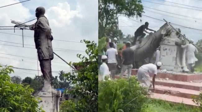 Bangladeş'te Başbakan Şeyh Hasina Vecid'in istifası ve ülkeden ayrılmasıyla sonuçlanan protestoların ardından kaçak başbakanın babası, ülkenin kurucu lideri olan Mucibur Rahman'ın heykelleri hedef alınıyor. Öfkeli kalabalık heykelleri bir bir yıkıyor. Son 3 günde onlarca heykel yıkıldı.