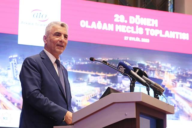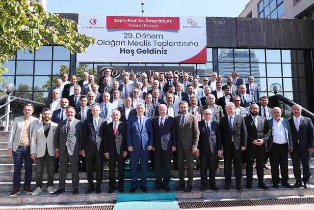28 EYLÜL 2023- Ankara Ticaret Odası’nın (ATO) 29. Dönem Eylül ayı Olağan Meclis Toplantısı, Ticaret Bakanı Prof. Dr. Ömer Bolat’ın katılımıyla ATO Meclis Salonu’nda yapıldı. Bolat, Meclis Üyelerine hitaben yaptığı konuşmada, Ticaret Bakanlığı olarak hedeflerinin ihracatı günlük 1,5-2 milyar dolar seviyesine çıkarmak olduğunu söyledi.