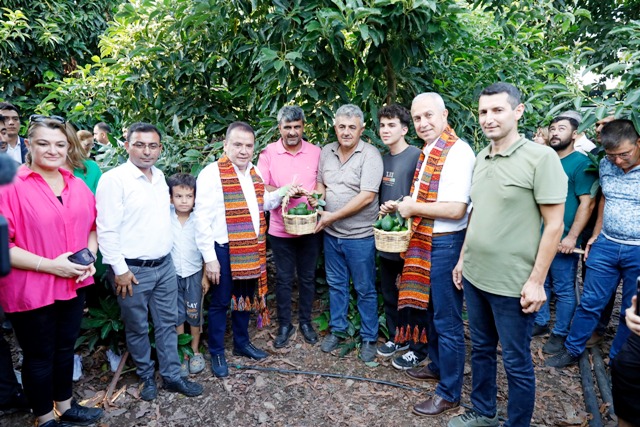 Başkan Böcek ve Özçelik Alanya'da tropikal meyve hasadı yaptı