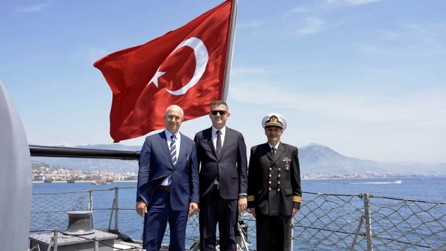 Alanya’da 23 Nisan Ulusal Egemenlik ve Çocuk Bayramı kutlamaları nedeniyle iskeleye demirleyen TCG-ATAK Savaş Gemisi vatandaşların ziyaretine açıldı. Çok sayıda vatandaş gemiyi ziyaret etmek için iskelenin yolunu tuttu. Savaş gemisini ziyaret eden vatandaşlar yetkililerden bilgiler aldı. Öte yandan, Alanya Belediye Başkanı Osman Tarık Özçelik de geminin komutanlarını makamında ağırlayarak onlara çeşitli hediyeler takdim etti. Başkan Özçelik, “23 Nisan Ulusal Egemenlik ve Çocuk Bayramı dolayısıyla Alanya’mıza demirleyen, TCG-ATAK Savaş Gemisi’nin Komutanı Deniz Binbaşı Abdullah Gökhan Ercan, Deniz Üsteğmen Aykut Karasu ile İkmal Üsteğmen Ahmet Tik’i ağırlamaktan büyük memnuniyet duyduk. Ardından Kaymakamımız Sayın Fatih Ürkmezer, şehit ailelerimiz ve gazilerimizle birlikte gemimizi ziyaret ettik. Misafirperverlikleri için değerli Komutanımıza ve tüm mürettabata teşekkür ediyorum. Mavi vatanımızın gurur kaynaklarına kentimize hoş geldiniz diyor, görevlerindeki başarıların devamını diliyorum” dedi. – Erkan Uysal