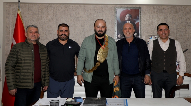 CW Enerji Türkiye Yağlı Güreş Ligi’nde şampiyon olan Başpehlivan Orhan Okulu Corendon Alanyaspor Kulübü Başkanı Hasan Çavuşoğlu'nu ziyaret etti.