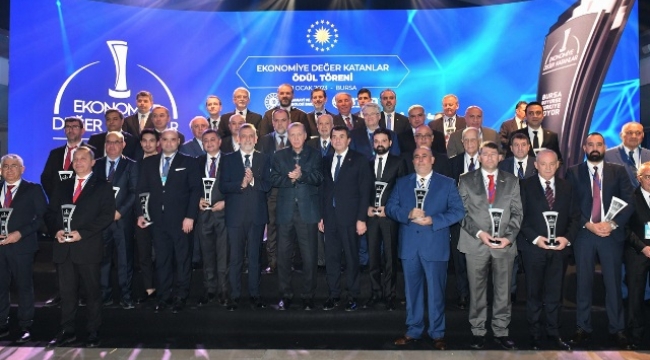 Bursa Ticaret ve Sanayi Odası (BTSO) tarafından düzenlenen 48. Ekonomiye Değer Katanlar ödül töreni Cumhurbaşkanı Recep Tayyip Erdoğan'ın katılımıyla gerçekleştirildi. Törende, ihracat, sektör liderleri, gelir vergisi ve kurumlar vergisi kategorilerinde 39 ödül sahiplerini buldu. Bursa Ticaret ve Sanayi Odası'nın 134 yıllık köklü geçmişiyle şehrin hafızası konumunda olduğunu belirten Cumhurbaşkanı Erdoğan, “Türk sanayisinin lokomotif şehri Bursa'nın marka değerini artıracak, ekonomik potansiyelini harekete geçirecek her türlü projeyi destekledik. Bursa'ya ve Bursalı kardeşlerimize hizmet etmeyi sürdüreceğiz” dedi.