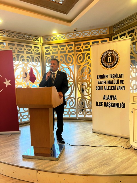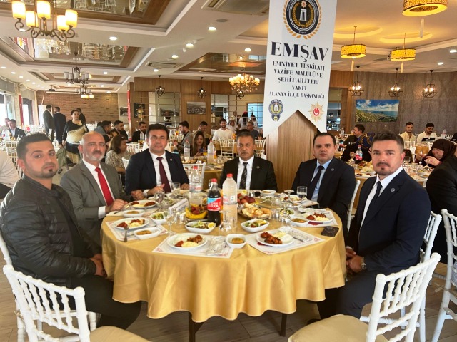 Açılış töreninin ardından Alanya Öğretmenevi’nde açılış yemeği düzenlendi. Kur’an-ı Kerim tilavetiyle başlayan program, konuşmalarla devam etti. Konuşmasına Emniyet Teşkilatı’nın Alanya’daki şehit yakınlarını tanıtarak başlayan EMŞAV Alanya İlçe Başkanı Hakan Çoban, şunları söyledi: “Bu görevi bizlere layık gören EMŞAV Genel Başkanımız Sayın Abdurrahman Yılmaz ve büyüklerimize tekrar teşekkür ederim. Yaklaşık 9 ay önce Abdulkadir Tanrıtanır ağabeyimizi ebediyete uğurladık. Değerli ağabeyimizin EMŞAV’a çok büyük katkıları oldu, mekanı cennet olsun. Ben Emniyet Teşkilatı’na 22 yıl önce dahil oldum. İstanbul Cinayet Masası, Sivas Cinayet Masası, Alanya KOM Grup Amirliği ve Ağır Suçlar Grup Amirliği gibi önemli görevlerde bulundum. Başarılarla dolu bir meslek hayatım geçti. 2 defa İstanbul birincisi oldum. Görev sürecimde bana şehit ya da gazi olmak nasip olmadı. EMŞAV olarak bizim sloganımız; ‘Unutmadık, unutmayacağız ve unutturmayacağız.’ Bu bizim misyonumuzdur. Alanya’da Emniyet Teşkilatı’na bağlı 6 şehidimiz, 18 gazimiz bulunuyor. Vakfımız, 1998 yılında EMŞAD olarak kurulmuştur. 2011 yılına kadar dernek olarak faaliyetlerini sürdürdü. 2011 yılında ise Sayın Cumhurbaşkanımız Recep Tayyip Erdoğan’ın öncülüğünde kamu yararına çalışan vakıf statüsünü almıştır. Teşkilatlanmamız her geçen gün büyümeye devam ediyor. Genel Merkezimiz dahil olmak üzere toplam 67 ilde faaliyet gösteriyoruz. Gönüllü sayımızı da her geçen gün artırmaya devam edeceğiz inşallah. Bu anlamlı günde bizleri yalnız bırakmadığınız için teşekkür ederim.”
