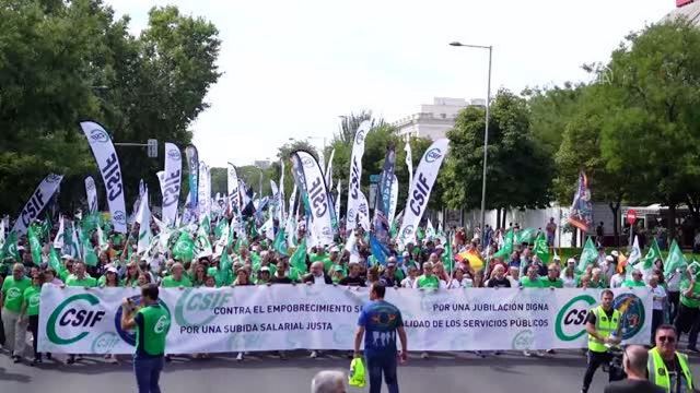 İspanya Memurlar ve Serbest Çalışanlar Sendikasının (CSIF) çağrısıyla başkent Madrid'de düzenlenen gösteriye katılan binlerce kişi, "sosyal yoksullaşmaya karşı adil bir maaş artışı, düzgün bir emeklilik ve kaliteli kamu hizmeti" talebiyle yürüdü.