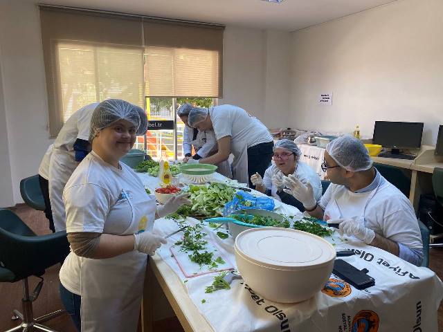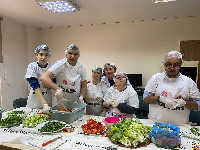 Engelli bireylerin temel gereksinimlerinden biri olan beslenme ihtiyacını karşılama becerilerini arttırmak amacıyla yapılan atölye çalışması 4 hafta süreyle 5’er kişilik gruplar halinde gerçekleştiriliyor. Her hafta farklı bir tarifle buluşan engelli bireyler tüm aşamalarında uzman diyetisyen desteğiyle güzel bir lezzet ortaya çıkarmanın keyfini yaşıyorlar. Hazırlanan yiyecekleri aileleriyle birlikte tadan engelli bireyler; başarmanın mutluluğunu yaşayarak unutamayacaklar bir gün geçiriyorlar.