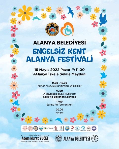 Engelsiz Kent Alanya sloganı ile yola çıkan ve Erişilebilir Bir Şehir oluşturan Alanya Belediye Başkanı Adem Murat Yücel, 10-16 Mayıs Engelliler Haftası kapsamında bir festival düzenliyor. Engelli vatandaşlar ve ailelerinin yanı sıra tüm vatandaşların katılacağı ve farkındalık yaratılacak olan festival 15 Mayıs Pazar günü Alanya İskele Şelale Önünde gerçekleştirilecek.