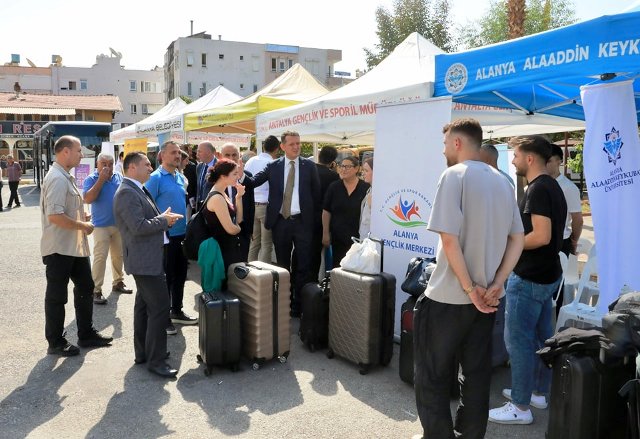 Ziyarete Alanya Kaymakamı Fatih Ürkmezer, Alanya Belediyesi Başkan Vekili Mahmut Köse, Alanya Alaaddin Keykubat Üniversitesi (ALKÜ) Rektörü Prof. Dr. Kenan Ahmet Türkdoğan, Alanya İlçe Gençlik ve Spor Müdürü Emre Kıldırgıcı, Alanya Belediyesi Sosyal Yardım İşleri Müdürü Hüseyin Doğan katıldılar. Üniversite sınavları sonucunda ilçedeki ALKÜ ve Alanya Üniversitesi’ni kazanan yeni üniversiteli öğrenciler için Alanya Otogarı’nda ALKÜ, İlçe Gençlik ve Spor Müdürlüğü, Alanya Belediyesi Gençlik Hizmetleri Birimleri tarafından karşılama stantları oluşturuldu. Ziyarette öğrencilerin şehri tanımaları ve bilgi edinmeleri için oluşturulan stantları ziyaret eden Kaymakam Ürkmezer stantlar ile ilgili bilgiler aldı.