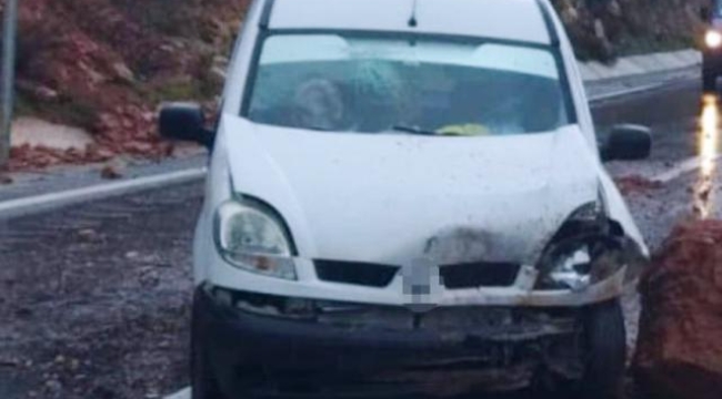 Gazipaşa’da yola düşen kaya parçasına çarpan araçta hasar oluşurken 72 yaşındaki kadın hafif şekilde yaralandı.