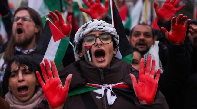 Uluslararası Adalet Divanı önünde Gazze'ye destek gösterisi