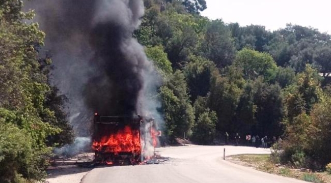 Halk otobüsü kısa sürede alev topuna dönerken, sürücünün müdahalesi yetersiz kaldı. 112 Acil Çağrı Merkezine ihbarı sonrası olay yerine çok sayıda itfaiye ekibi sevk edildi. Antalya Büyükşehir Belediyesi İtfaiye Daire Başkanlığı’na bağlık ekiplerin müdahalesi ile alev topuna dönen otobüs söndürüldü. Yangın sonrası demir yığınına dönen halk otobüsü çekici ile bulunduğu yerden kaldırıldı. – İHA