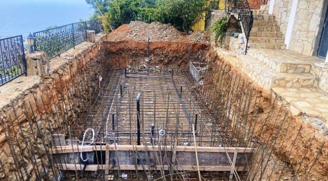Havuz inşaatında çalışan işçi yüksekten düşerek yaralandı