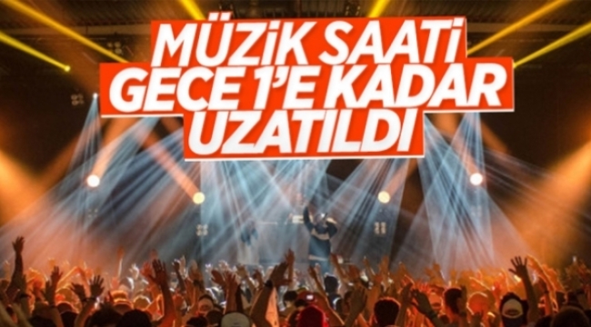 İçişleri Bakanlığı, müzik yayın saatlerini yeniden belirlendi. Pandemi sürecinde saat 24.00’te sona erecek şekilde belirlenen müzik yayın saati gece 01.00’e kadar uzatıldığını açıkladı.