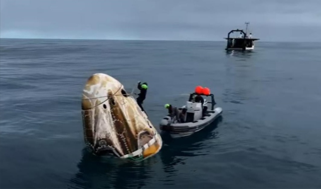 Ax-3 ekibini taşıyan SpaceX'e ait Dragon kapsülü, Florida açıklarında dün okyanusa inmişti.