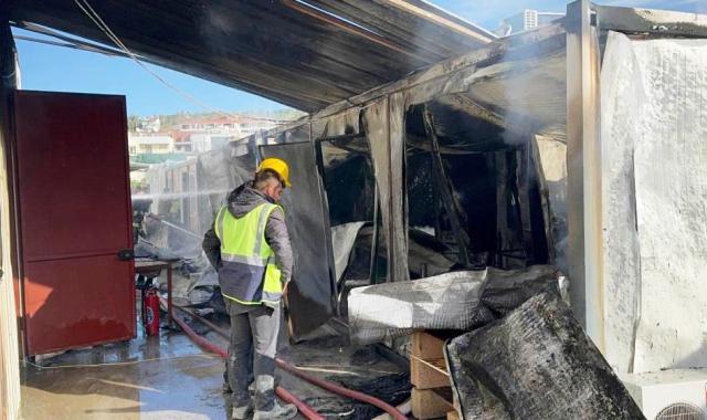 İşçilerin kaldığı prefabrik lojmanda yangın çıktı