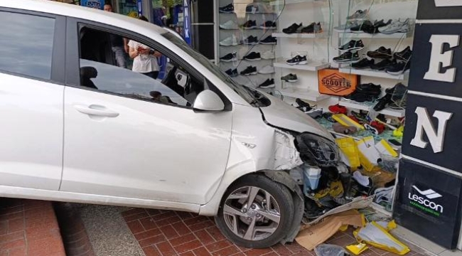 Kaldırımı aşan otomobil mağazaya daldı