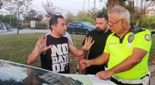 Kaliforniya'da yaşadığını söyleyen alkollü araç sürücüsü ile trafik polisi arasında ilginç diyaloglar yaşandı. Alkollü sürücünün Trafik Polislerine ortada hiç olmayan Kaliforniya ehliyetine el koyamayacaklarını söylemesiyle başlayan diyalog, sürücünün sürekli gülerek ‘ben elimden geldiğince size yardımcı oluyorum' şeklinde sürerken, alkollü araç kullanmaktan 6 bin 439 TL, sürücü belgesini yanında bulundurmamaktan bin 506 TL ve sürücü belgesine 6 aylığına el konulduğunun, aracının da bağlanarak yediemin otoparkına çekileceğinin söylenmesi üzerine “bu ülkenin kaç paraya ihtiyacı var?” demesiyle ayrı bir boyut kazandı. Alkollü sürücünün söylemine kızan trafik polisi sürücüyü konuşmalarına dikkat etmesi konusunda uyardı. Alkollü sürücünün bir ara görüntü alan İHA Muhabirine dönerek “kameraya niye alıyorsunuz. Haber mi olduk yani” dediği gözlendi. Alkollü sürücü olay yerine çağrılan polis ekibi tarafından polis merkezine götürüleceğini öğrenince “Ben bittim ya kelepçe de takacak mısınız?” diye sordu. – İHA