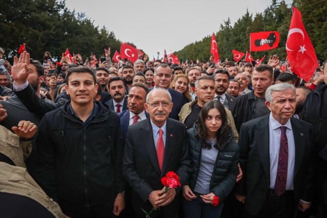 Millet İttifakı Cumhurbaşkanı Adayı ve CHP Genel Başkanı Kemal Kılıçdaroğlu, Ankara Büyükşehir Belediye Başkanı Mansur Yavaş ve partililerle Aslanlı Yol'dan yürüyerek Atatürk'ün mozolesine geldi.