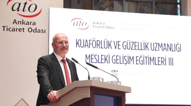 9 HAZİRAN 2022- Ankara Ticaret Odası (ATO) Yönetim Kurulu Başkanı Gürsel Baran, ATO 43 No'lu Kuaför ve Güzellik Salonları Meslek Komitesi'nin Kuaförler Kooperatifi (KUKOOP) ile birlikte gerçekleştirdiği "Kuaförlük ve Güzellik Uzmanlığı Mesleki Gelişim Eğitimleri"nin üçüncü programına katıldı.