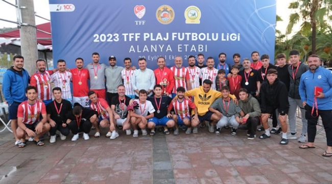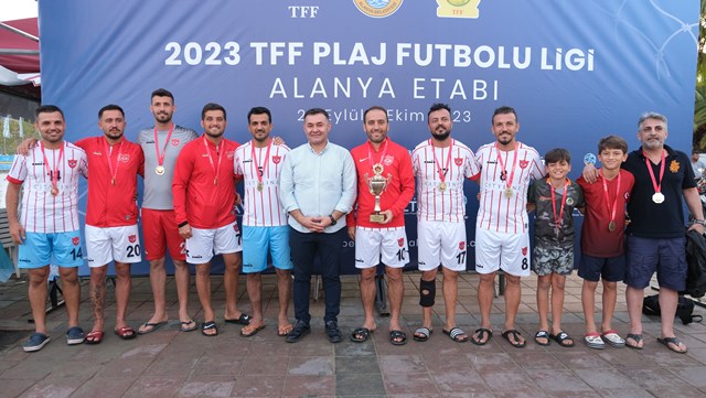 Türkiye Futbol Federasyonu tarafından Alanya’nın ev sahipliği ile düzenlenen Tff Plaj Futbolu Ligi Alanya Etabı Galip Dere Plajı’nda sona erdi. Turnuvaya katılan sporcular kupa ve madalyalarını Alanya Belediye Başkanı Adem Murat Yücel’in elinden aldı.