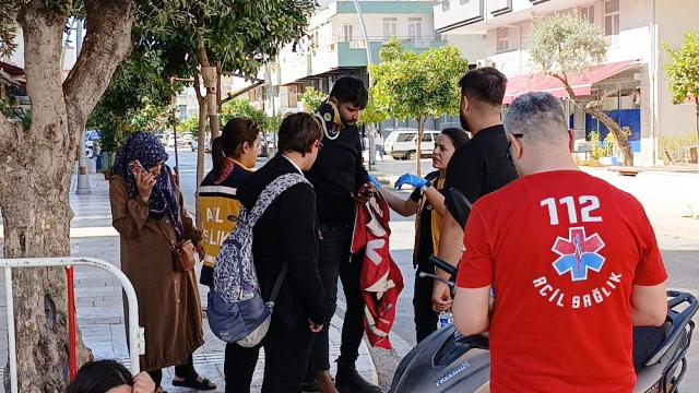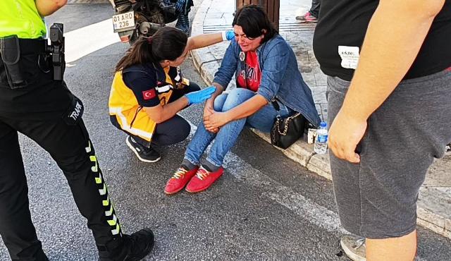 Antalya'da otomobil ile motosikletin çarpışması sonucu meydana gelen kazada motosiklet sürücüsü yaralanırken, otomobil sürücüsü kadın gözyaşlarına hakim olamadı.