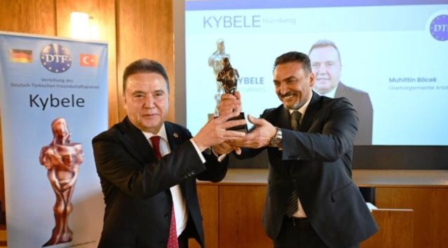 Türk-Alman Dostluk Federasyonu (DTF) tarafından her yıl geleneksel olarak Türkiye ile Almanya arasında spor, ekonomi, politika ve eğitim gibi çeşitli alanlarda başarılı çalışmalar gerçekleştiren kişilere verilen "Kybele" ödülünün sahibi bu yıl Antalya Büyükşehir Belediye Başkanı Muhittin Böcek ve Nürnberg Büyükşehir Belediye Başkanı Marcus König oldu. Nürnberg Belediye Başkanlığı binasının tarihi toplantı salonunda gerçekleşen ödül törenine, siyasiler ve ekonomi dünyasından isimler katıldı. Nürnberg Belediyesi'nin tarihi toplantı salonunda gerçekleşen ödül töreninde Antalya Büyükşehir Belediye Başkanı Muhittin Böcek ve Nürnberg Belediye Başkanı Marcus König'e ödülleri takdim edildi.
