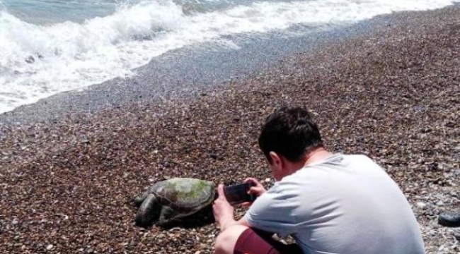 Ölü caretta caretta sahile vurdu