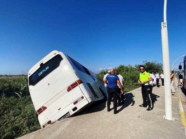 Antalya'nın Serik ilçesinde otel personelini taşıyan otobüsün yoldan çıkıp şarampole yuvarlanması sonucu 7 kişi yaralandı.