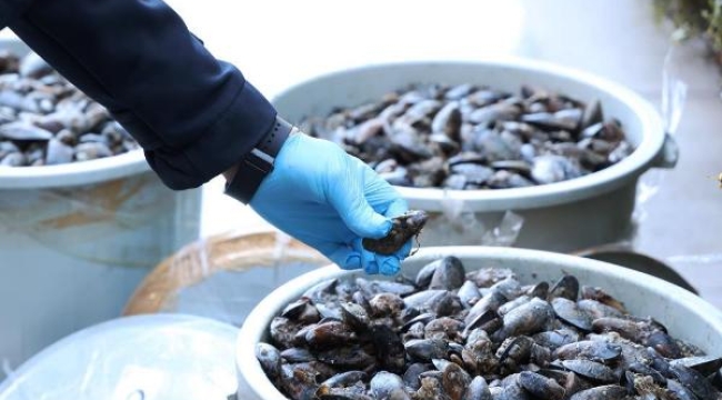Otobüs terminalinde 300 kilo midyeye el konuldu