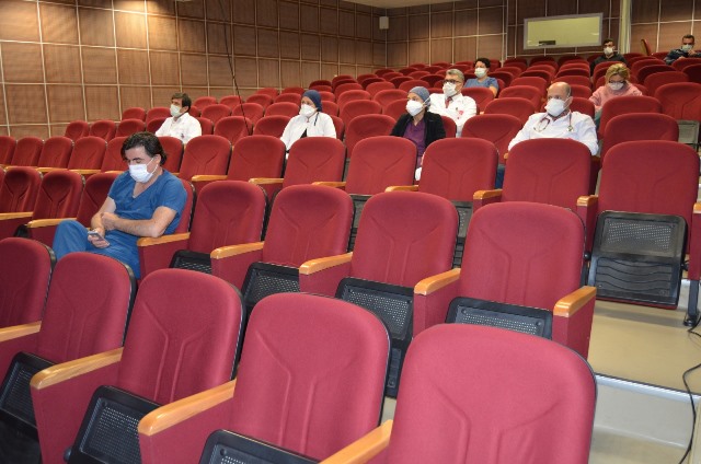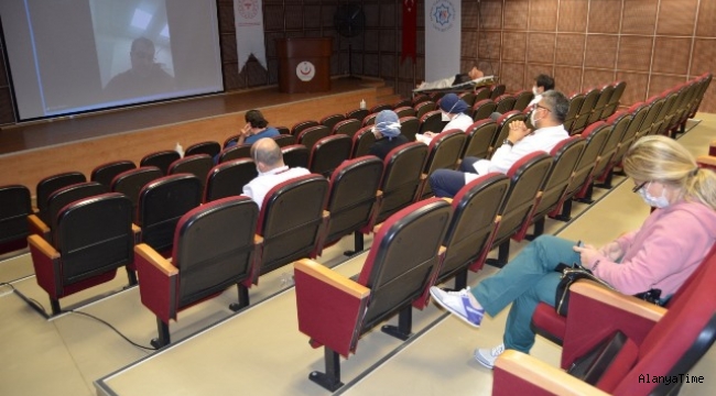 ALKÜ Alanya Eğitim ve Araştırma Hastanesi Antalya Kamu Hastaneleri Hizmetleri önderliğinde Antalya bölgesi sağlık kurumları ile yüz yüze uzaktan eğitim ile bir araya geldi. Salgın şartları nedeniyle hastanenin konferans salonunda online düzenlenen eğitime ilgili birim hekimleri ve Hastane Başhekimi Prof. Dr. Hüseyin Lakadamyalı katıldı.