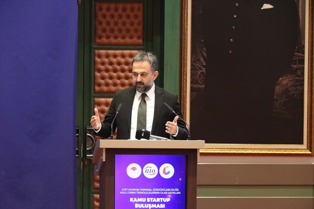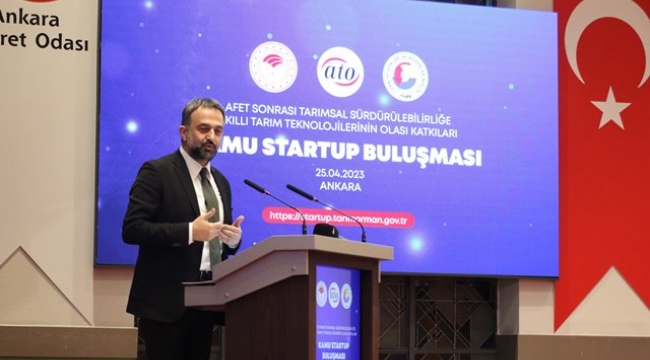 Ankara Ticaret Odası’nın Tarım ve Orman Bakanlığı iş birliğiyle Türkiye Odalar ve Borsalar Birliği (TOBB) Ankara Genç Girişimciler Kurulu organizasyonunda gerçekleştirdiği "Afet Sonrası Tarımsal Sürdürülebilirliğe Akıllı Tarım Teknolojilerinin Olası Katkıları Kamu Start-Up Buluşması” ATO Başkan Yardımcısı Halil İbrahim Yılmaz, Tarım ve Orman Bakanlığı Tarım Reformu Genel Müdürü Burhan Demirok ve TOBB Ankara Genç Girişimciler Kurulu Başkanı Hakan Tarhan’ın katılımıyla yapıldı.