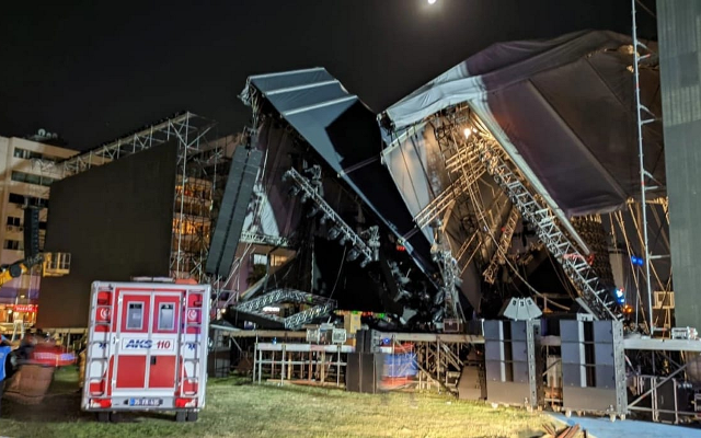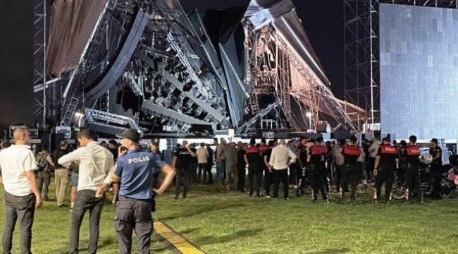 Sahne, müzik sistemi ve uzaktaki seyircilerin izleyebilmesi amacıyla dev ekranların kurulumu için ekipler, çalışmalarını sürdürürken, dün saat 23.00 sıralarında Tarkan'ın konser vereceği sahnede dev platform henüz belirlenemeyen nedenle çöktü.