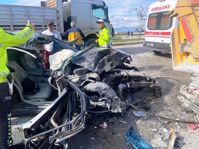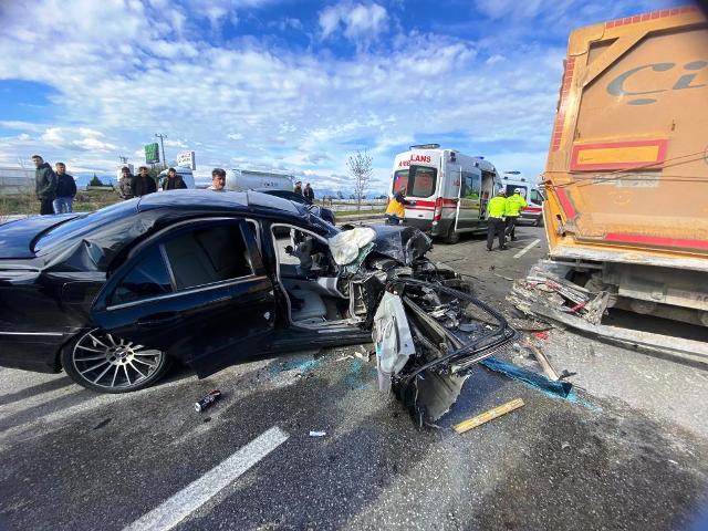 TIR'la çarpışan otomobil hurdaya döndü: 3 yaralı