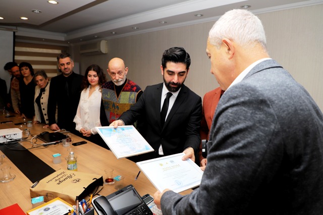 Sanata ve sanatçıyı desteklemeye devam edeceklerini belirten Başkan Özçelik, “Alanya’yı bir sanat şehri haline getirmek için göreve geldiğimiz andan itibaren kolları sıvadık. Bu yolun en önemli kilometre taşlarından birisi de elbette sizlersiniz. Tiyatroya gönül vermiş, sanatla yaşayan bu ekibe ve kentimizde sanatla uğraşan herkese destek vermeye hazırız. Göreve gelince ilk işlerimizden birisi de yeni bir kültür merkezi yapabilmek adına çalışmalara başlamaktı. Hem sizler için hem de kentimizde kültürle, sanatla uğraşan herkes için böyle bir merkezi hayata geçirmek istiyoruz. Gerekli görüşmelerimiz devam ediyor. Görüşmelerin tamamlanması ve planların yapılmasının ardından yeni bir merkezin temelini atacağız" dedi. Belediye Tiyatro Oyuncuları da Başkan Özçelik ve Başkan Yardımcısı Koçak’a kendilerine olan desteklerinden dolayı teşekkür ederek, Kazakistan’da alınan ödülü takdim ettiler. – Alanya Belediyesi / Bülten