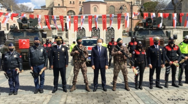 Türk Polis Teşkilatı'nın 176. Kuruluş Yıl Dönümü ve 10 Nisan Polis Haftası; İstanbul Ayasofya Meydanı'nda maske, sosyal mesafe ve temizlik kuralları çerçevesinde kutlandı.