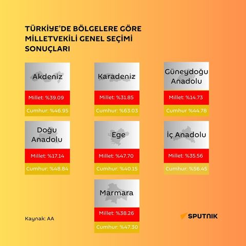 Cumhur İttifakı oy oranı yüzde 44.78, Millet İttifakı'nın oy oranı ise 14.78.Akdeniz Bölgesi