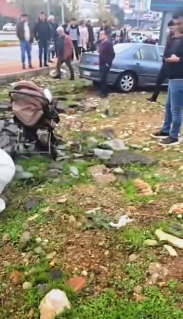 Yoldan çıkan otomobil kaldırımdaki bebek arabalı yayalara çarptı: 3 yaralı