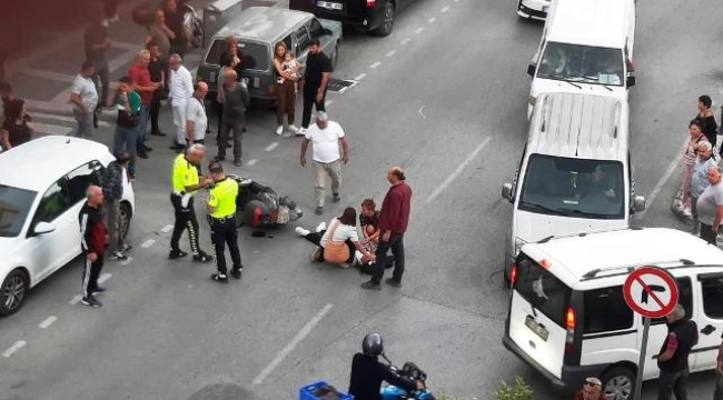 Antalya'da yolun karşısına geçmek isteyen genç kadına motorlu bisikletin çarpması sonucu meydana gelen trafik kazasında, sürücü ve yaya yola savruldu.