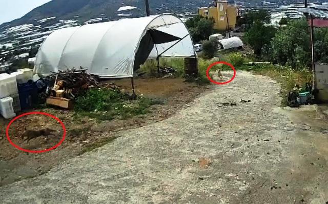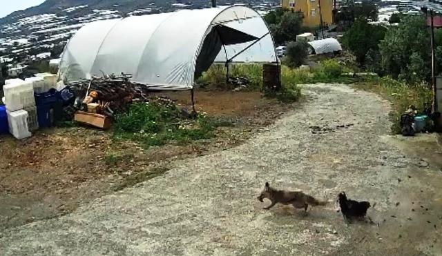 Tilkinin av anları ve yaşadıkları güvenlik kamerasına yansıdı. Görüntülerde tavuğu önce yakalayan tilki, ardından kaçırınca ikinci hamlesini yapması, tam yakalayacağı sırada ise köpeğin kovalamasıyla neye uğradığını şaşırıp kaçma anları yer aldı.