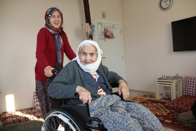 102 yaşındaki Fatma Nine'nin tekerlekli sandalye mutluluğu
